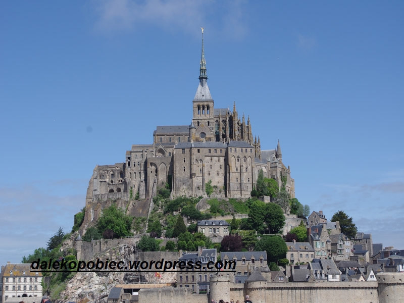 Rano podekscytowani ruszamy do Le Mont St.Michael. Wyspa, twierdza , miasto wszystko w jednym. Sama budowla wręcz ścina z nóg a do tego jeszcze krajobraz. Zmienny przez przypływy i odpływy oraz pory roku. Coś niesamowitego. Nasze zdjęcia są po odpływie ale zobaczcie w internecie jeszcze inne. Warto! To dlatego chcemy tam wpaść na parę dni , może o innej porze roku. Sama historia tego miejsca wydaje się tajemniczego , mistycznego i położonego w ukryciu na końcu Europy nie jest jednak aż tak bardzo interesująca. Jedynie krótka legenda niesie że podczas budowy doszło do rzekomych cudów – poranna rosa wyznaczyła zarys fundamentów, skradziona krowa ukazała się nagle tam gdzie powinien lec pierwszy złom granitu, trzymane na rękach niemowlę odsunęło stopami głaz zagradzający drogę oraz ukazanie się św. Michała który wskazał źródło słodkiej wody. Zresztą ten sam święty nakazał wybudować wcześniej kościół ⛪ na skale przy okazji wypalając dziurę w głowie biskupowi Avaranches znanego później św. Aubertem . Dlaczego tak niesamowite miejsce przez lata historii nie odegrało praktycznie żadnej roli. No właśnie . A Świętego Grala czy Arki Noego jak nie znaleziono tak nie znaleziono.