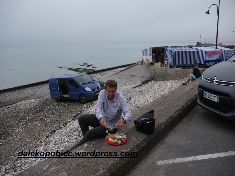 Następnego dnia śniadanie na plaży w Cancale .Jemy ostrygi prosto z morza . Na surowo z cytrynką.