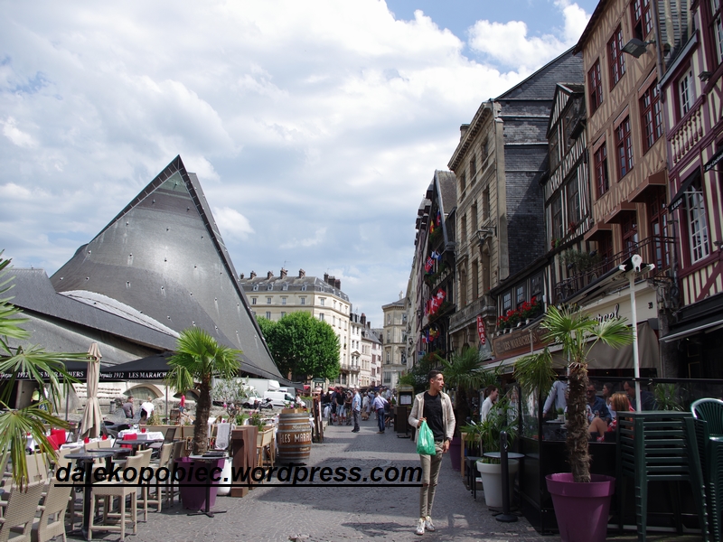 Tym razem tylko 50 km i jesteśmy w Honfleur małe miasteczko które rozrosło się kiedyś dzięki targu rybnemu a teraz rozwija się dzięki niezliczonej ilości restauracji i knajpek . Miasteczko naprawdę niewielkie ale mało gdzie znajdziemy tyle miejsc do spożycia różnego rodzaju potraw. Przede wszystkim frutti de mare za które zapłacimy od 10 euro za garnek (dosłownie) muli (małże) plus frytki (nawet smaczne ale przy schabowym u mnie wymięka) Są też wielokrotnie droższe dania dla wielbicieli morskich i nie tylko specjałów.