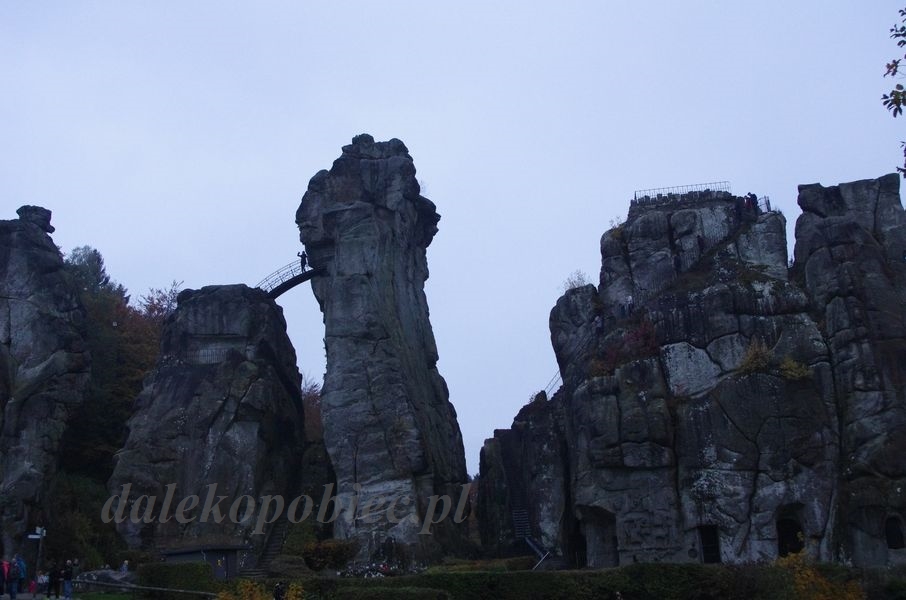 Brak wiarogodnych źródeł historycznych nie pozwala stwierdzić do jakich celów wykorzystywano te naturalnej formy piaskowca skały przpominające kominy . Mi pasuje historia o obserwatorium w którym to Druidzi (Celtyccy kapłani) coś sobie tam palili , składali ofiary czy przywracali prastare demony ;-)) ale żadne badania nie potwierdzają tej ani innej teorii . Za to do zwiedzenia jak najbardziej polecam . Dużo ładnych ścieżek , restauracyjka , można też się udać pod prawie 54 metrowy pomnik Arminiusza Hermana (myśmy niestety z powodu załamania pogody musieliśmy się ewakuować.)