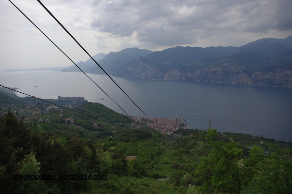 Jezioro jest najczystszym i największym jeziorem włoskim częściowo otoczone Alpami. Ta strona jest bardziej wietrzna i widowiskowa. Szczyty górujące nad jeziorem mają ponad 2000 metrów jak np. Monte Baldo z fajną kolejką linową gdzie cała gondola obraca się wokół swej osi i co ciekawe jest obsługiwana przez motorniczego ? stojącego koło Was.