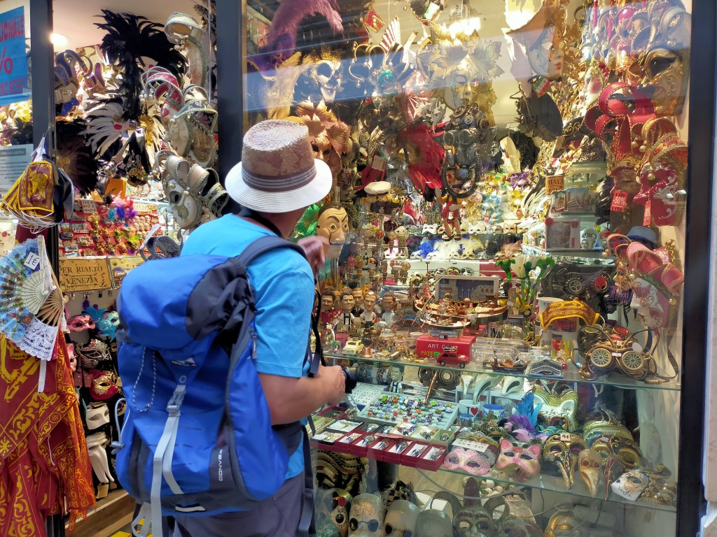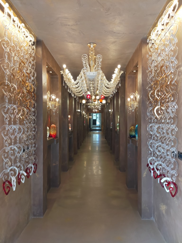 Następnego dnia spakowani na całodzienne zwiedzanie udaliśmy się rowerami na podbój Wenecji. Po przejechaniu wzdłuż pięknego mostu łączącego ląd stały z wyspą o wdzięcznej nazwie Die Ponte della Libertà niemile się zdziwiliśmy że z prawdziwej rowerówki pozostały tylko znaki wymalowane na wąskim chodniku. Z resztą po ok. 500 m. znaleźliśmy się na placu gdzie kończyły bieg autobusy , taksówki oraz gdzie musieliśmy i my. Próba postawienia rowerów gdziekolwiek mogła się chyba źle skończyć bo po prostu nigdzie ich nie było. Jedyną opcją przed którą się broniłem to podziemny parking rowerowy w cenie 10 euro . Za jeden rower. Nie pochwalam tego ale boxy są na tyle duże że dwa też się zmieszczą;-) . Trochę to smutne bo parkingi dla samochodów też kosztowały ok 10 euro za dzień a trasa busem tam i z powrotem to tez ok 10 e za osobę. Dużo się mówi o ekologii ale widzę nie tylko w Wenecji że ekologia ma czasem odcień komercji i biznesu ale to już inny temat. Szczęście w nieszczęściu z powodu pandemii liczba zwiedzających bardzo zmalała (tak twierdziły statystyki i strach pomyśleć ilu turystów jest tam w szczycie sezonu.) Kupiliśmy bilet na tramwaj wodny którego przystanki (czy mini porty) są zaraz koło dworca autobusowego czy każdej większej atrakcji . Bilet na przejazd „tam i z powrotem” to 15 euro (ważny 75 min od skasowania każdy) wydaje się za drogi w porównaniu z biletem 1 Day (całodzienny ) który kosztuje 20e. Będąc dłużej niż 1dzień warto kupić te 2 lub 3 dniowe. Przed nami Wenecja , Murano , Burano , La Vignole i inne wyspy. Szczęśliwi mimo wielu przeciwności udaliśmy się na pierwszą wyspę Murano , bieganina po mostkach mosteczkach, fotki , sklepiki, przesiadka znowu atrakcja , i znowu , i znowu . Koło 15 nagle ruch zamiera . Kolejne połączenia zostają skasowane . O co chodzi? Po chwili dezorientacji wiemy . To że odbywały się tam Festiwal sztuki filmowej wcześniej nam obiło się o uszy ale nie liczyliśmy na spotkanie jakiś gwiazd ( świat prominentów delikatnie nas sorry ale brzydzi a może to zwykła zazdrość?) ale że akurat tego dnia odbędzie się parada połączona z wyścigiem gondol i brutalnie nas uziemni na szczęście na głównej wyspie. Co by był gdybyśmy byli wtedy na jakiejś odległej wyspie? No cóż może warto wszystko wcześniej sprawdzać ale ja lubię zwiedzać miejsca odkrywając je dla nas a nie najpierw wszystko zobaczyć w internecie . Ale po tym przypadku wiem że wielkie miasta czy miejsca z wieloma atrakcjami jednak należy dobrze zaplanować a szczególnie jak się ma mało czasu .