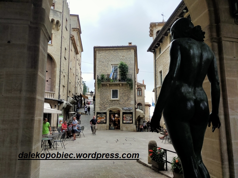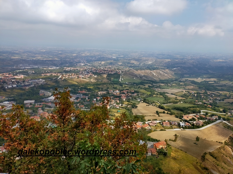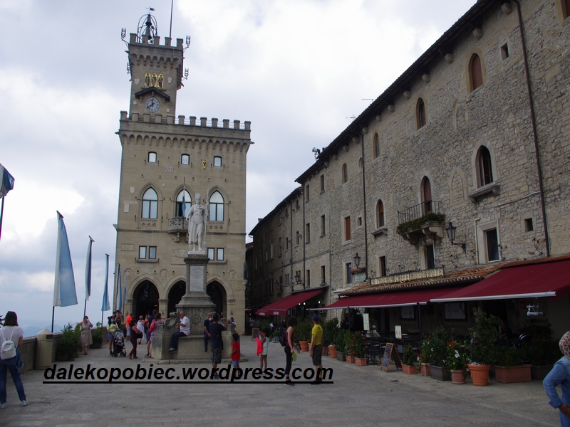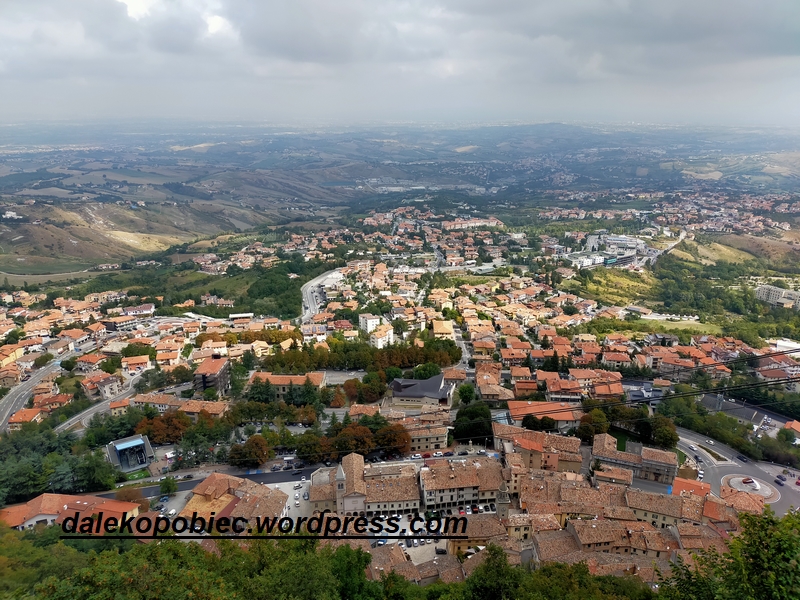 to trzecie Po Watykanie i Monako najmniejsze państwo w Europie a podobno najstarsza republika na świecie. Co ciekawe byliśmy w Monako i Jeszcze jednym małym państwie Andorra i miałem trochę wyobrażenia o tym co może nas spotkać ale… i tak nas zaskoczyła swoją oryginalnością . Wrażenie że to jest naprawdę mały kraj potęguje fakt że zwiedzamy tylko szczyt Monte Titano gdzie znajduję się właściwie całe centrum z trzema wieżami między którymi normalnie wędrują tam i z powrotem bardzo liczni turyści. No tak , tym razem turystów było niewielu a liczni sprzedawcy spoglądali z dość niepewnymi minami na przechodniów. Niestety tylko koło 13 zrobiło się liczniej przy … stolikach z jedzeniem . Epidemia czy nie , zjeść trzeba , tak chyba brzmiało motto jedzących. Zadziwiające jest to że państwo bez fabryk, złóż minerałów , dostępu do morza itd. może być jednym z najbogatszym państwem na świecie nie mając zadłużenia i kontroli celnej.!!!