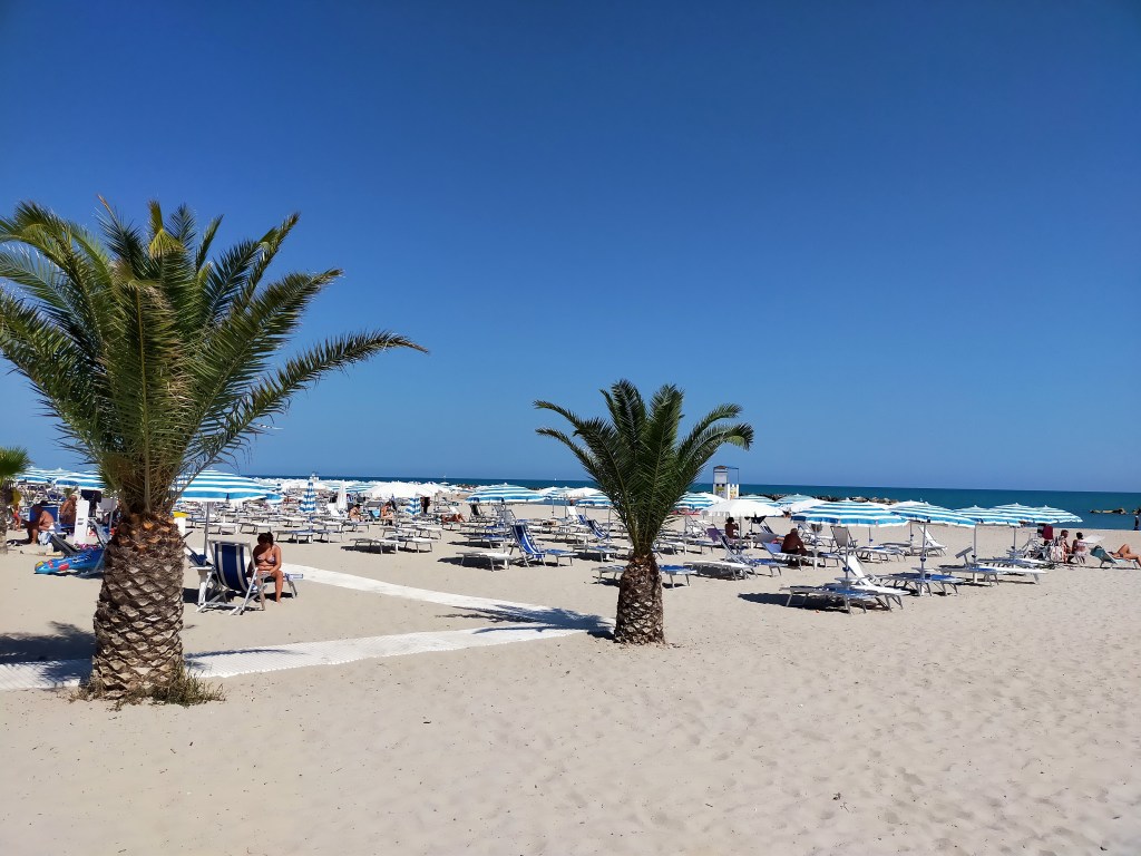 Śmiesznie ale w i w tym mieście biegaliśmy pod peronami z rowerami na plecach bo jedyny most w centrum był w remoncie a objazdy wykraczały poza nasze możliwości ( według map Google ) Troszkę rozczarowani udaliśmy się na plażowanie do pobliskiego Rimini. Szeroki długie piaszczyste plaże , o tak tego nam było potrzeba .