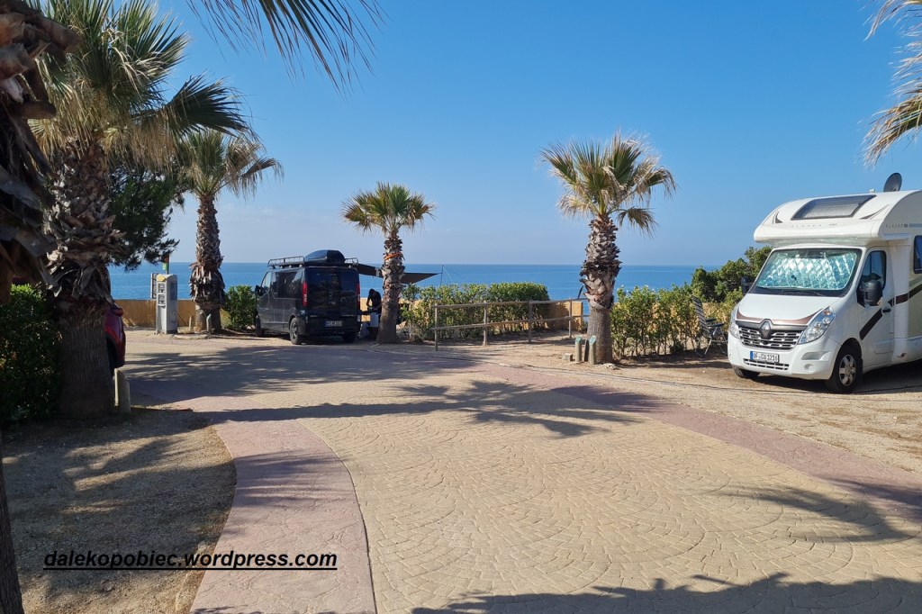 Miejscowość raczej typowa , większość to hotele i pensjonaty jeszcze czekające na turystów ale zupełnie wystarczająca do spędzenia tutaj miłego czasu. No troszeczkę woda ciut za zimna ale w sumie to dopiero wiosna. Woda błękitna , słonko świeci , widoczki całkiem ,całkiem . Ale żeby nie było za pięknie już wieczorem pogoda się załamuje a prognozy na ten kąt raczej kiepskie .W strugach deszczu opuszczamy tą całkiem ładną miejscowość. Często korzystamy z aplikacji pogodowych. Nie są one 100 procentowe ale dają z grubsza czego się można spodziewać. Rejon Costa Brava jest bardzo ciekawym regionem ale byliśmy już paru miejscach więc jedziemy dalej . Może bliżej Alicante będzie dalej. Po paru godzinach jesteśmy przed Barceloną dokładnie w Premia de Mar. Barcelonę już z grubsza zwiedziliśmy wcześniej i tylko powiem naprawdę warto ale też wiemy że sam przejazd przez nią to nie lada wyzwanie więc zostawiamy sobie to na rano. Premia de Mar to raczej nieciekawe miasteczko. Przypomina już raczej peryferie Barcelony niż miejscowość wypoczynkową ale idziemy się poszwędać po plaży .