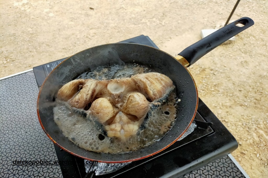 Jeśli chodzi o sklepy to są bardzo dobrze zaopatrzone a ceny całkiem przyzwoite. My pokusiliśmy się na dość tanią rybkę a właściwie dzwonek . Na campingu po przetłumaczeniu nazwy rybki okazało się że … jemy rekina ( dobrze że nie odwrotnie) .Smak taki sobie . Chyba raczej nie zatęsknię .