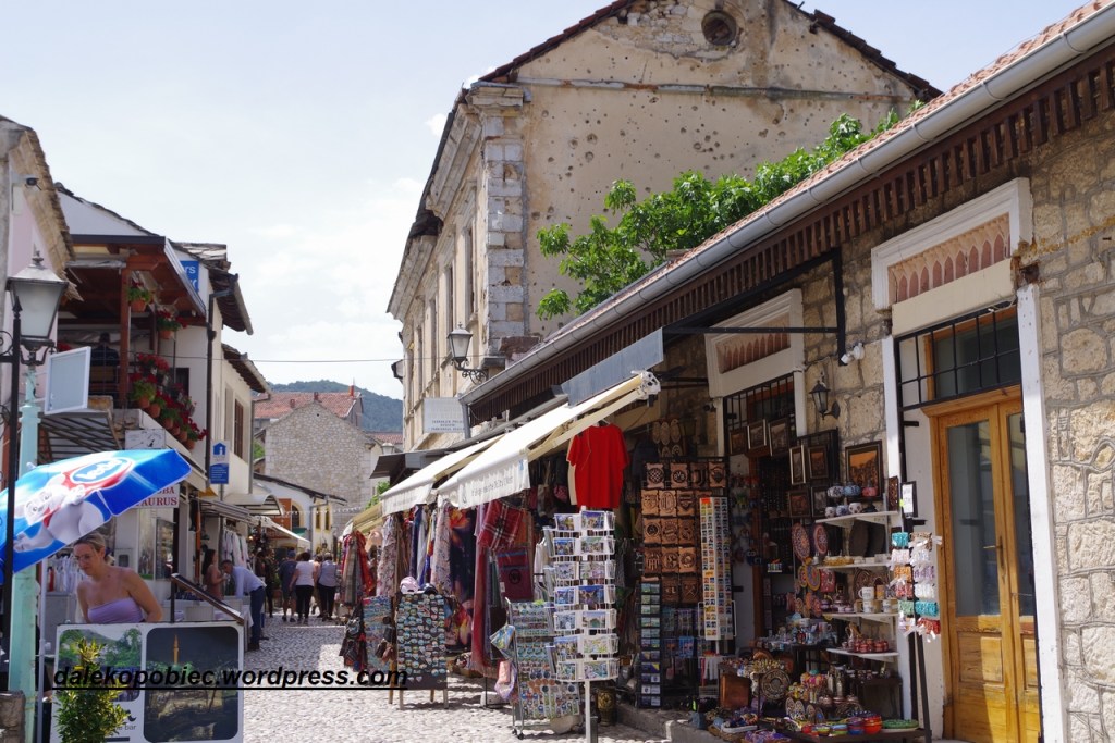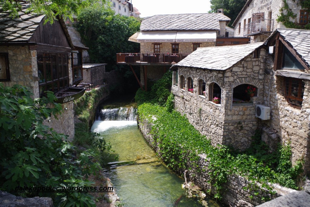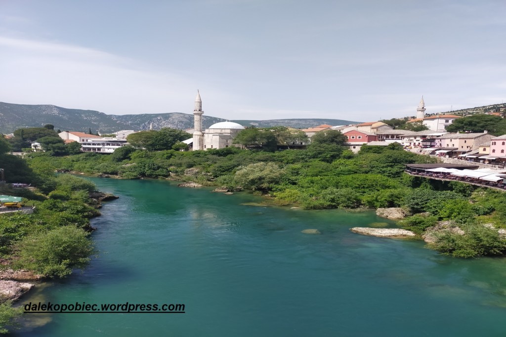 Docieramy do Mostaru , miejscowość od razu nam się bardzo podoba , jest nieduża , położona nad rzeką Neretwa która ma przepiękną barwę na tle gór , meczetów i biały zabudowy . Niestety i tu wojna pozostawiła swoje tragiczne ślady ponieważ most łączący miasto jest symbolem walki między muzułmanami i chorwatami . Wprawdzie został odbudowany przez Unię Europejską ale głęboka rana pozostała . Samą atrakcją jest też próba zarobku przez młodych chłopców którzy najpierw zachęcają na datki po czym skaczą z mostu który ma 24 m wysokości a rzeka wbrew pozorom nie wygląda aż tak głęboko . Samo miasto z wieloma sklepikami , restauracjami , lodziarniami naprawdę jest urocze aż zachęcają do dłuższego pobytu , niestety lejący się żar z nieba mocno nas zaskoczył i po zwiedzaniu miasta gdzie naszy celem celem był właściwie tylko ten most , planujemy jeszcze zdążyć podjechać na camping w miejscowości Medjugorie .