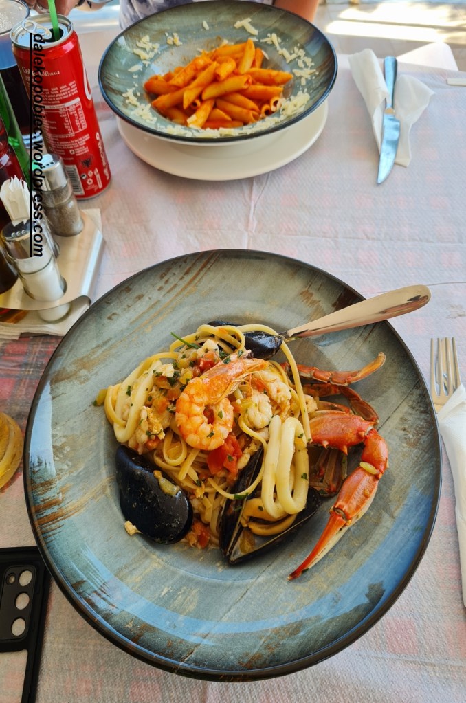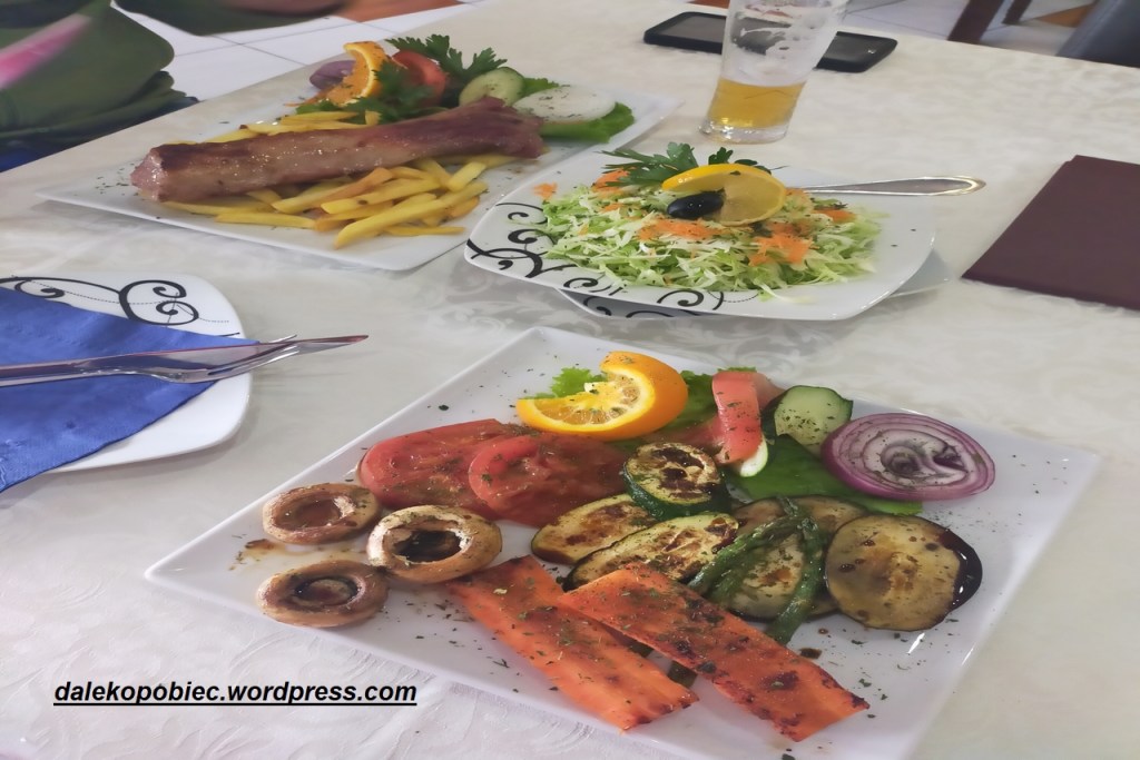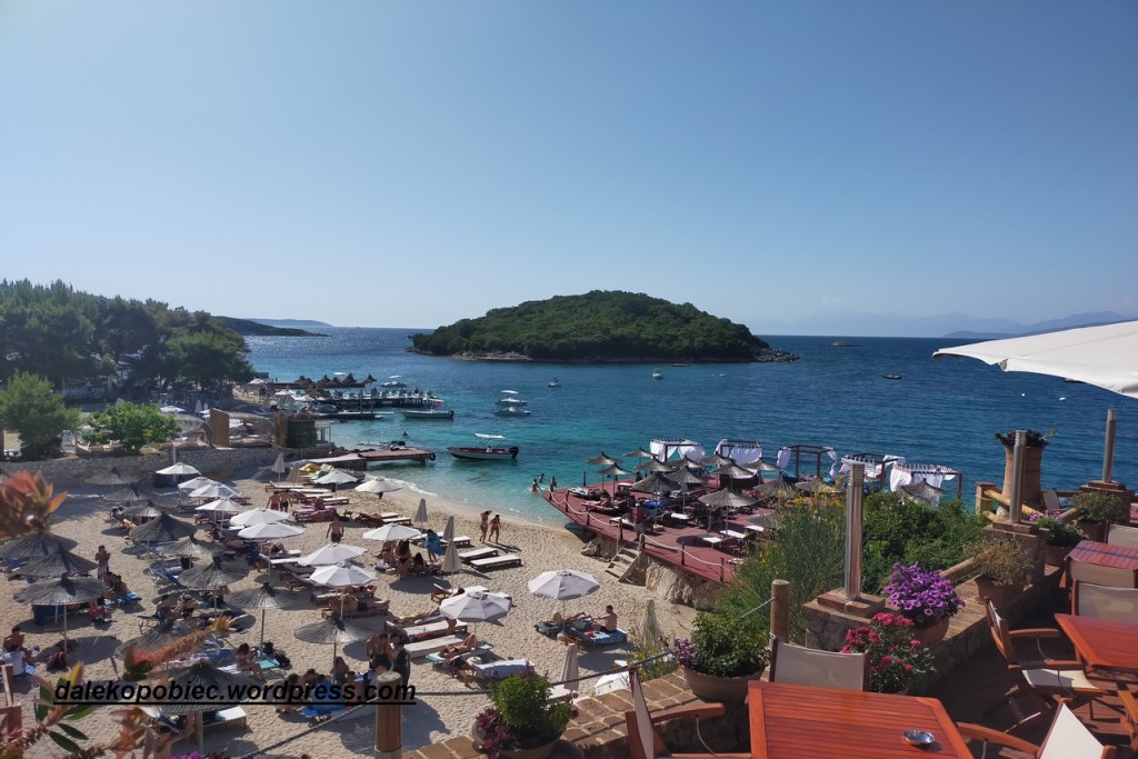 Saranda nie jest jakimś ładnym miejscem ale tanie loty , niedrogie koszty pobytu, pogoda i czar Albanii powinny wystarczyć żeby spędzić tam krótki urlop. Można też odbyć parę wycieczek ale oprócz półwyspu Ksamil i źródła Blue Eye reszta wymaga sporo jazdy . Na półwysep zwany ,,Albańskimi Hawajami ” z Sarandy można się bardzo łatwo dostać . My trochę zniesmaczeni campem postanowiliśmy się przenieść właśnie na wspomniane ,, Hawaje” . Miało być dużo drożej , tłoczniej i hałaśliwie a spędziliśmy tam wspaniałe parę dni . Owszem na najpiękniejszym kawałku rzeczywiście ceny w restauracjach się podwajały , było głośno ale dotyczyło to tylko tego jednego kawałka gdzie po prostu było jedno wielkie centrum rozrywkowe . Pięć minut pieszo i znowu było błogo i cicho . W dość niepozornej restauracji w głębi miasteczka zjedliśmy chyba najlepszy posiłek w Albanii wydająć skromne 25 euro .(dwa ogromne dania , deser , piwko i lokalna wódeczka)