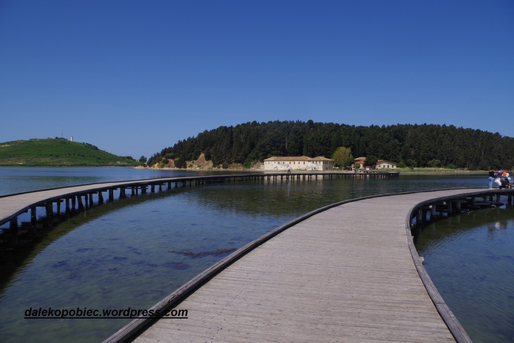 Wjeżdżamy do Macedonii od strony południowo zachodniej i p krótkiej jeździe znajdujemy camp w miejscowości Kalista . Powiem że po opisach spodziewałem się dużo niższego standardu a zostaliśmy miło zaskoczeni . Udało nam się nawet zaparkować w pierwszej linii z pięknym widokiem na jezioro. Ale najlepsze dopiero zaczęło się pod wieczór . Prawdziwy żabi i ptasi koncert . Nigdy czegoś podobnego nie słyszałem a od lat przewijam się po takich miejscach , no i miałem parokrotnie paroletnie epizody wędkarskie więc mogę coś na ten temat powiedzieć . No i pierwsza kąpiel też to było coś ale tym razem natura trochę mnie przeraziła . W czasie kąpieli zauważyłem liczne ni to patyczki ni to poruszająca się na fali trzcina . Okazało się że jezioro licznie zamieszkują wodne … węże . Wprawdzie nie duże i podobno nie groźne ( to słowa tubylca) ale jakoś ode chciało mi się dalszej kąpieli . Wprawdzie na drugi dzień spróbowałem jaszcze raz ale z kolei atak zaborczego i agresywnego łabędzia wyleczył mnie na dobre z tego pomysłu . Będąc parę dni w tym miejscy zauważyłem u nowych przyjeznych bardzo podobny schemat ;-)) Oczywiście główną atrakcją jest Cerkwia Jana z Kaneo która w jednym z przewodników jest wytypowana na najczęściej fotografowanym miejscem na ziemi . Po dłuższej rozmowie z sztuczną inteligencją wyszukiwarki (nowość podobno) niestety nie umiem tego potwierdzić .