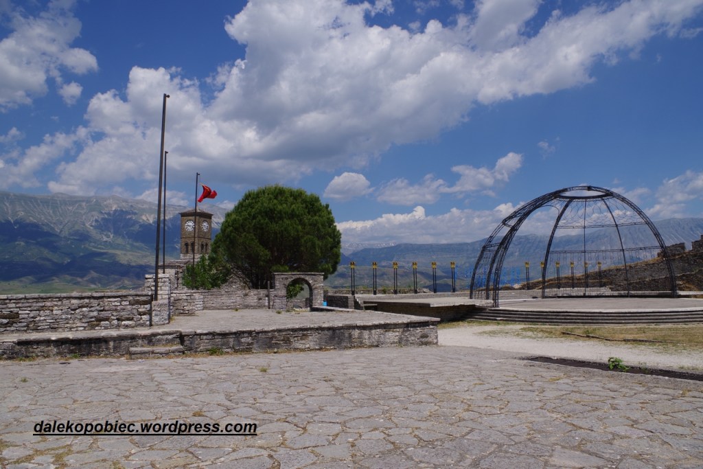 Gjirocastra to duże miasto ale my skupiliśmy się na starej części i zamku. I znowu ponad 30 stopniowy upał i pełne słońce dość utrudniało zwiedzanie bo raczej ciężko było znaleźć cień czy naturalny chłód , no może na zamku ale tam wydawało się znowu troszkę za chłodno , to takie trochę babskie narzekanie turysty ale warunki w Albanii to takie skrajności . Na zamek prowadzi dość znaczne podejście najpierw miastem i handlowymi uliczkami a potem lekko zacienionym laskiem za to z dość stromym podejściem.